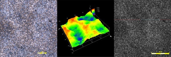 Es werden immer neue Stahloberflächenbehandlungen und -beschichtungen entwickelt, um die Korrosionsstabilität zu verbessern, der Stahlbeschichtung besondere Eigenschaften zu verleihen und das Aussehen von Stahlteilen zu verbessern. Während dieses Entwicklungsprozesses wird die Rauheit von Stahlblechen analysiert, da sie mit den Eigenschaften dieser Behandlungen und Beschichtungen zusammenhängt. Mit dem OLS4100 Mikroskop kann eine beliebige Anzahl von Behandlungs- und Beschichtungskomponenten – beispielsweise Deckschichten, Grundschichten, chemischen Beschichtungen, Legierungen und das Stahlblech selbst – sorgfältig untersucht und in Bezug auf die Oberflächenrauheit analysiert werden.
