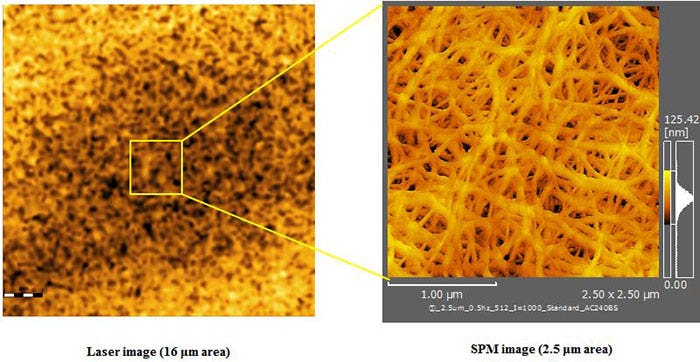 (2) A laser microscope improves productivity when obtaining final SPM data.