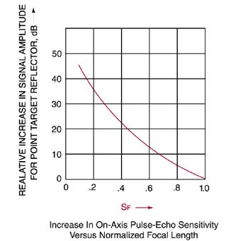 Focusing gain (relative increase in sensitivity at the focal point compared with an unfocused transducer) is based on SF and may be estimated from the following graph (Figure 3):