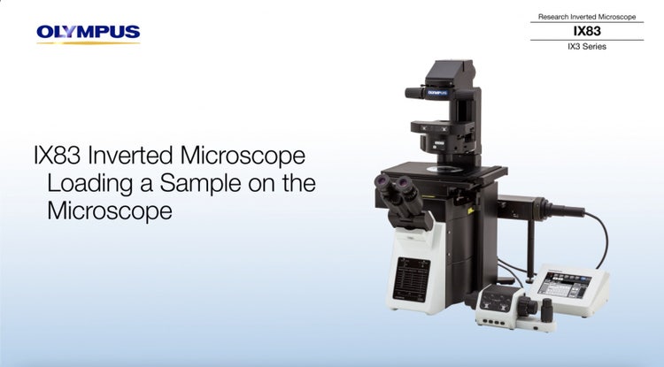 Dieses Video zeigt, wie eine Probe mithilfe eines standardmäßigen 1 × 3 Zoll Objektträgers auf das inverse IX83 Mikroskop positioniert wird.