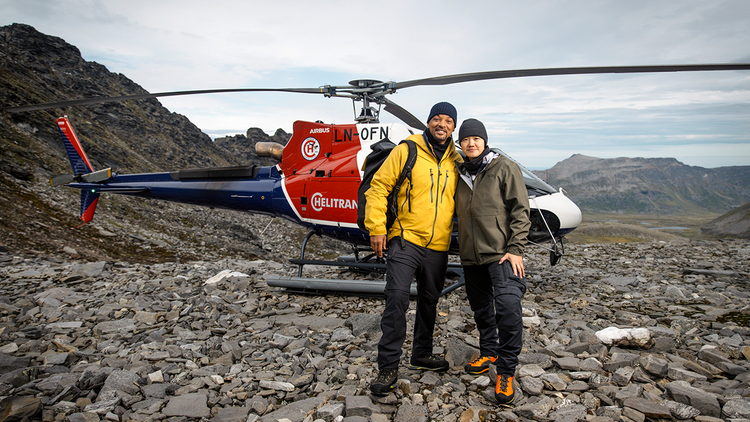 Will Smith (left) and Dr. Allison Fong (right) during their expedition to the North Pole. Image courtesy of National Geographic/Freddie Claire.