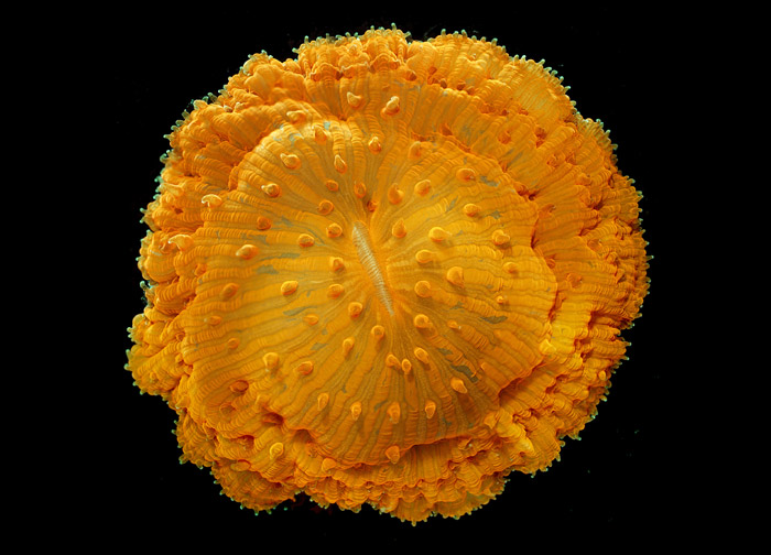 Specimen: Live mushroom coral Fungia sp. Close-up of mouth during expansion.