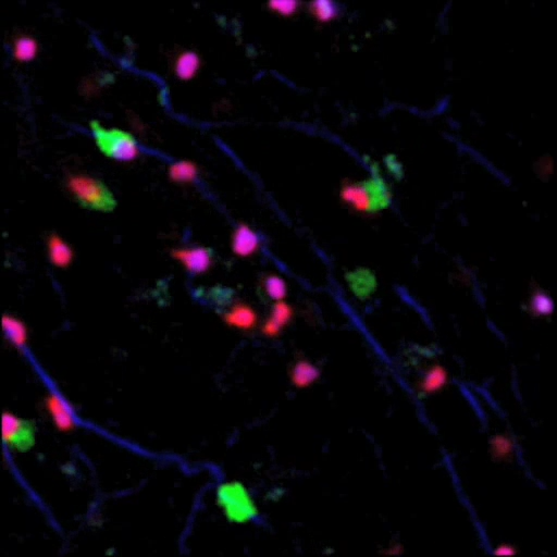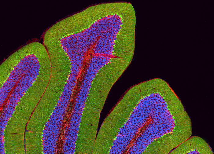 Specimen: Rat cerebellum, imaged with quantum dots (nanocrystals)