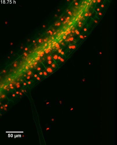 Specimen: Arabidopsis thaliana lateral root growing out of the primary root. A stack of images was recorded every 15 minutes over 75 hours