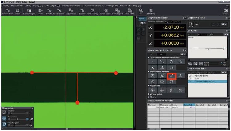 The STM7 measuring microscope can measure the dimensions specified for the injection needle and inspect the appearance with a single unit.