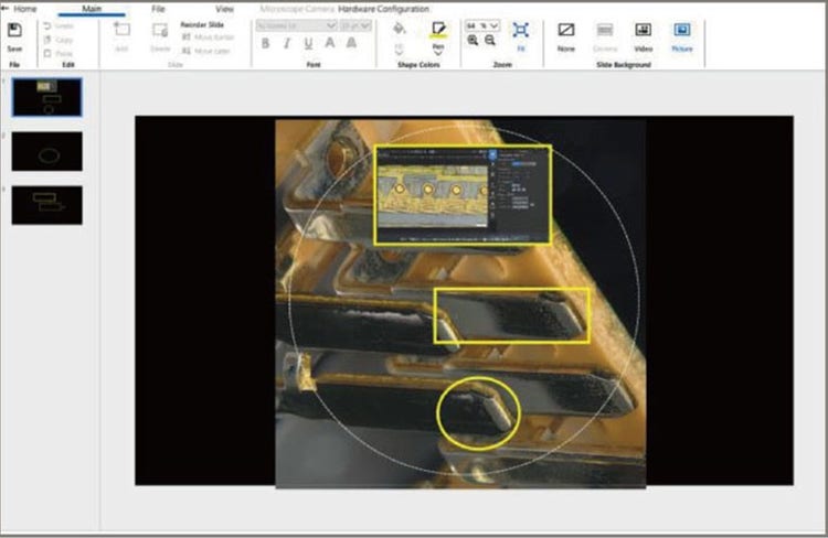 Using the SZX-AR1 software, work instructions, videos, images, and annotations can be displayed in the microscope’s field of view.