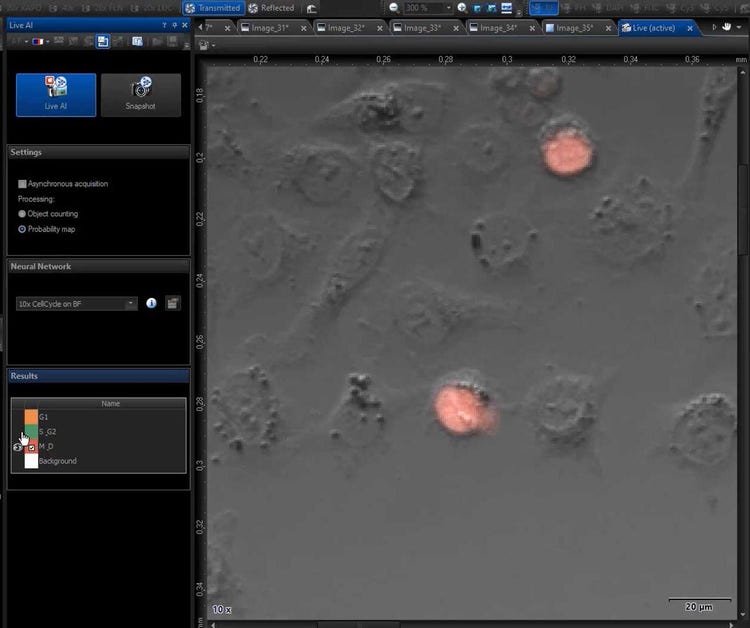 Observe as the live inference results of the trained neural network are revealed in real time. Knowing the inference results before you begin image acquisition increases the efficiency of your experiments.