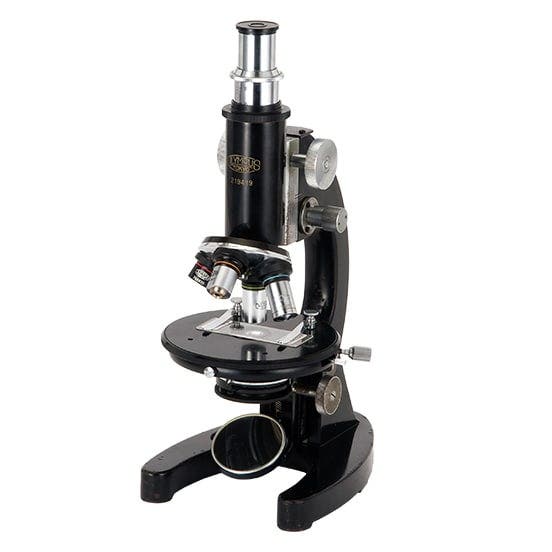 The GC model—based on the GK microscope body—was launched in 1947. Total magnification ranged between 50X and 1500X. The GC was widely used at universities, hospitals, and research laboratories for general medical or biological applications, as well as at teaching laboratories for practical sessions. The GC featured the same revolving stage as the GK and could be used with a binocular head.