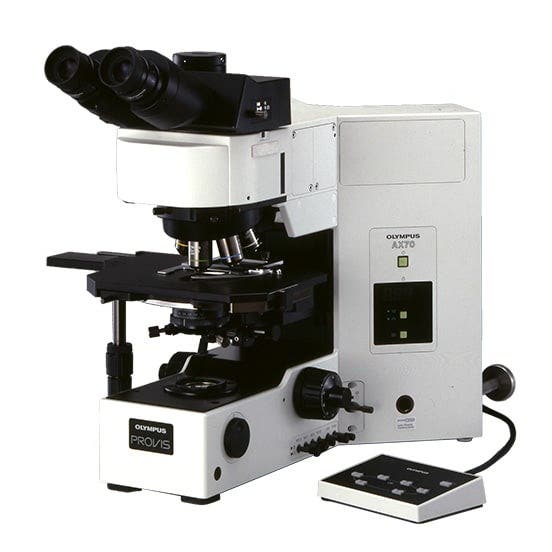 The AX series (AX70, AX80), nicknamed Provis, was launched in 1994, only one year after the BX series. AX microscopes featured automated observations and photography. The AX80 included autofocus and provided high-resolution images to meet the needs of professional users.