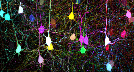 Mouse brain slice expressing 7-color Tetbow cleared with SeeDB2 (in utero electroporation). Sample courtesy of: Drs. Satoshi Fujimoto and Takeshi Imai, Graduate School of Medical Sciences, Kyushu University.