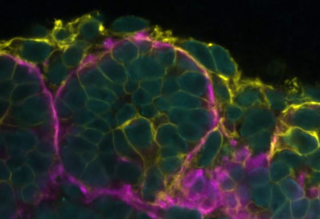 Human kidney organoid. AlexaFluor 488, 568,647 and DAPI used to target tubulin, integrin beta-1, laminin-111/211 and nuclei. Sample courtesy of: Dr. Robert Turnbull and Prof. Katja Röper, Department of Physiology, Development and Neuroscience, University of Cambridge.