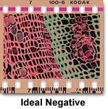 Evaluation of color negatives is somewhat difficult and requires more skill and experience than do black & white negatives or color transparencies. Highlight areas should not be excessively dense and shadowed features should be sufficiently detailed to render an overall balanced photomicrograph. Judging specific colors in color negatives is complicated by the presence of a mask that produces an orange tint over both the sprocket holes and the image area, including the color dye layers. The purpose of this mask is to help control contrast and correct for deficiencies in green and red-sensitive layers when the negatives are printed.