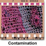 Unusual or unrealistic color casts or an obvious lack of color balance is often the result of a contaminated color developer solution. The source of contamination could range from unclean processing equipment (developing tank, graduated cylinders, mixing bottles, etc.) to mistakes mixing the processing chemicals. It is a good idea to use the same mixing bottles for each solution, even through they are washed out at the end of the processing session. By carefully labeling each bottle, mistakes are kept to a minimum. First developer solutions that have been diluted to working volume, then left for lengthy periods of time before use, can also produce strange color shifts in addition to underdevelopment. Even when the process temperature is raised to compensate for aged chemicals, reactions in the film emulsion during development with old solutions often leads to disastrous results.
