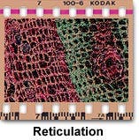 Reticulation occurs when film is exposed to extreme variations in processing temperature. The negative image appears "crinkled" or cracked throughout the surface and is damaged beyond repair. This error usually occurs when heated developer is inadvertently placed into the developing tank immediately after mixing. If the color developer bath is too warm, reticulation can occur to a lesser degree. As the degree of reticulation is reduced (by using cooler solutions), the cracked surface is no longer a problem, but film grain size often becomes increased. The solution to this problem is to carefully monitor the temperature of all solutions used in the development process. On rare occasions, reticulation can lead to production of prints with some degree of artistic merit, but most film damaged in this manner yields unsatisfactory prints.