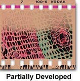 When every frame in a color negative filmstrip has been only partially developed, then one edge of the entire roll will appear much light than the opposite edge. This occurs when there is not enough color developer solution in the processing tank to completely immerse the film. To avoid the problem in the future, carefully measure the volume of liquid necessary to cover all film reels inside the developing tank and use this measurement to adjust developer solution volumes in subsequent processing sessions. Roller drums that are not properly filled will produce partially developed film frames positioned at only one end of the strip, nearer the center of the film reel. Film that has been only partially developed is permanently damaged and will not produce good prints unless enough of the image remains to allow satisfactory elimination of undesirable areas by cropping.