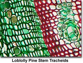 The specimen employed in this discussion is a brightfield color photomicrograph of a quadruple-stained thin section of longitudinal tracheids derived from loblolly pine. The staining mixture consists of safranin O (nuclei, chromosomes and cell walls), fast green (cytoplasm and cellulose cell walls), crystal violet (starch), and orange G (acidophilic cytoplasm). A Kodak Wratten CC10M magenta color compensating filter was used in the light path to eliminate a green cast present in background of the stained specimen. The image was recorded on Fujicolor Superia 100 color negative film and processed using the Kodak C-41 technique at 37.8 degrees centigrade.