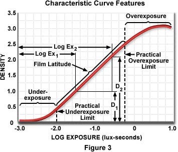 The linear region of a characteristic curve is also termed the film latitude and represents the useful range of exposure times for a particular film. Color and Black & White negative films display a substantially greater degree of latitude than do color transparency films, primarily because many exposure errors can be corrected during printing. Overexposure is tolerated by negative films much better than underexposure and leads to better prints, although the proper exposure will always produce superior results.