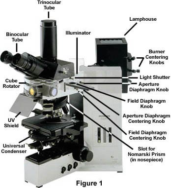 Reflected light fluorescence microscopy is overwhelmingly the choice of today's fluorescence workers. This mode of fluorescence microscopy is also known as incident light fluorescence, epi-fluorescence, or episcopic fluorescence. The universal reflected light vertical illuminator is interposed between the observation viewing tubes and the nosepiece carrying the objectives, as illustrated with the Olympus fluorescence microscope in Figure 1.