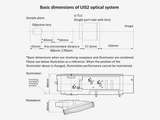 *Dimensions of the Olympus nosepieces and illuminators, where illumination performance is maximized.
