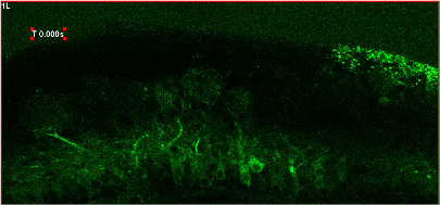 Live imaging of an acute olfactory bulb slice expressing GCaMP6f cleared with SeeDB-Live. Image acquired with a LUPLAPO25XS objective lens at 200 µm depth from the surface. Sample courtesy of: Drs. Shigenori Inagaki, Takeshi Imai, Graduate School of Medical Sciences, Kyushu University.