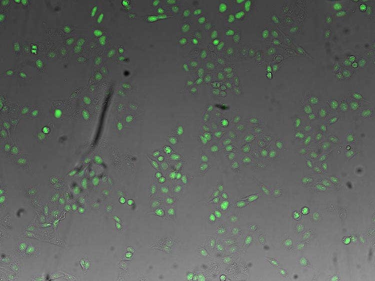 hES cells expressing FUCC (CA) biosensor. Courtesy of Dr. Silvia Santos, The Francis Crick Institute, London, UK.
