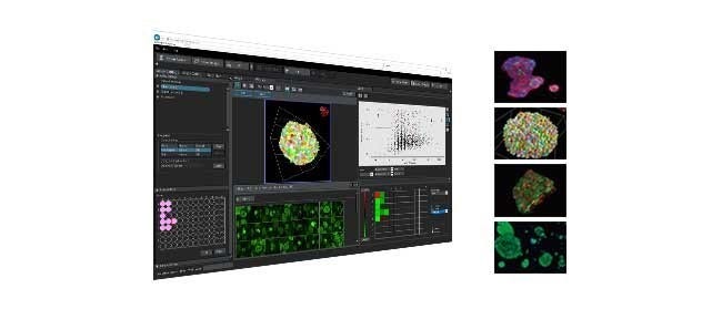 La heterogeneidad celular en el tejido tumoral está relacionada estrechamente con la progresión del cáncer, la angiogénesis, la resistencia del fármaco y otros aspectos. Por lo tanto, la heterogeneidad celular se está convirtiendo en un factor importante para la estrategia del desarrollo de fármacos. Se prevé que sea una herramienta muy útil en el análisis de la heterogeneidad de las células cancerígenas, ya que el modelo de esferoide del cáncer in vitro puede recapitular un microentorno de tumores sólidos en el tejido vivo. El sistema de análisis de imágenes analiza de forma cuantitativa los datos de imágenes obtenidos de las observaciones fluorescentes confocales. En este estudio, se evaluó cuantitativamente la citotoxicidad de un fármaco a través de la visualización del tamaño del esferoide y el microentorno dentro de los esferoides.