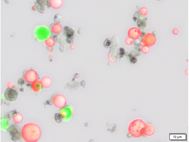La segmentación de imágenes por aprendizaje profundo se aplica a muchos casos. Por ejemplo, los cristales de estas imágenes también pueden representar muchos productos químicos cuyas burbujas o esferas son usadas como cápsulas o intercambiadores de iones (granulado de resina sintética) o como material portador (p. ej., para matices o ingredientes activos).