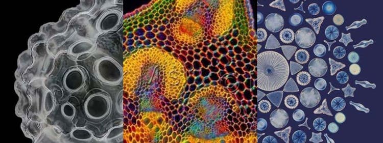 Este mes nos deleita con algo nuevo [justo en florecimiento], algo [muy] viejo, algo prestado [un arreglo sorprendente de diatomeas] y algo [manchado] azul. Si este antiguo proverbio nupcial se aplicase a la microscopía, ¿quizá, en este mes, esto signifique la buena suerte (e imágenes nítidas y sin ruido) para los microscopistas?