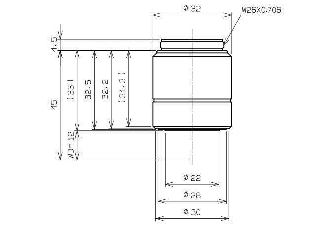20X objetivo NA 0.4 FN 26.5 WD 12.0 mm