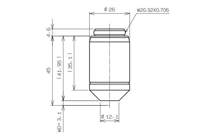 20X objetivo NA 0.45 FN 26.5 WD 3.1 mm
