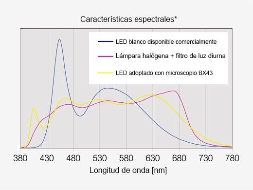*Este gráfico muestra las características espectrales de cada fuente de luz. No compara la fuerza de iluminación entre cada fuente de luz.