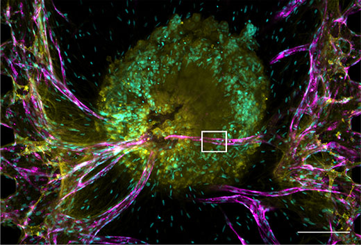 Prueba de viabilidad de medicamentos en esferoides tumorales 3D con el procesamiento de imágenes automatizado de nivel macro a micro