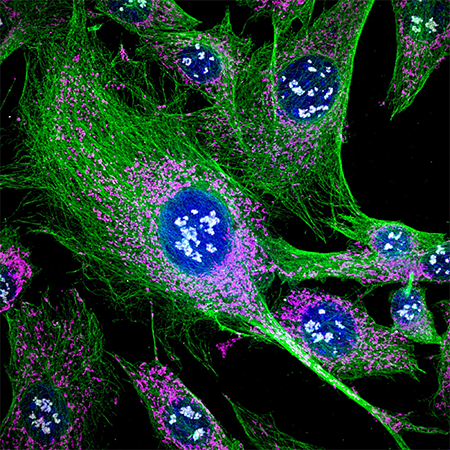Cultured NIH 3T3 cells. Sample provided by EnCor Biotechnology Inc.