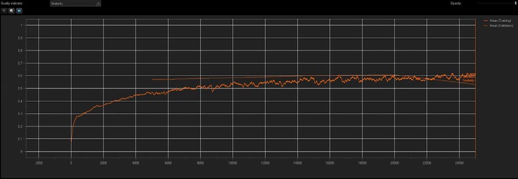 Figure 3 : L’entraînement du réseau neuronal indique l’indice de similitude et les valeurs moyennes de validation en temps réel.