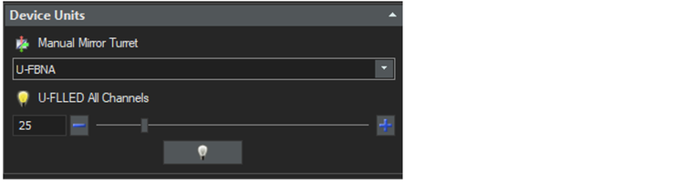Le système U-FLLED est conçu pour une utilisation immédiate grâce à des commandes simples. Une commande manuelle intuitive permet une utilisation sans PC pour l'observation de fluorescence de routine, incluant la sélection individuelle des canaux et le réglage de l'intensité.