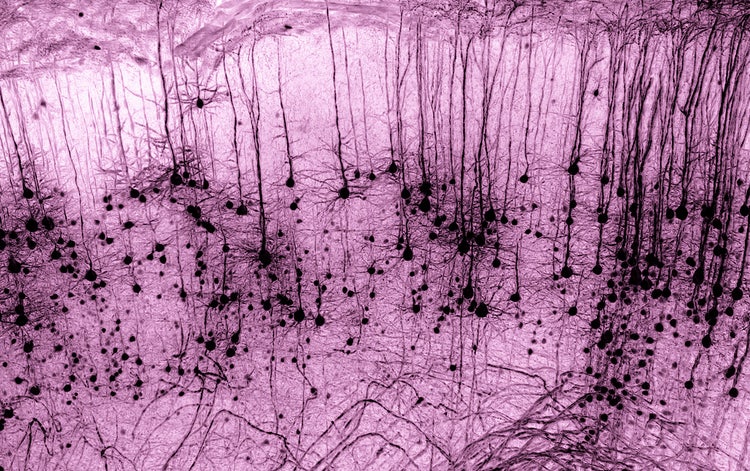 Neurone Thy1 positivo alla GFP in un cervello di topo reso trasparente. Scattata da Alexandre Dumoulin (Svizzera).