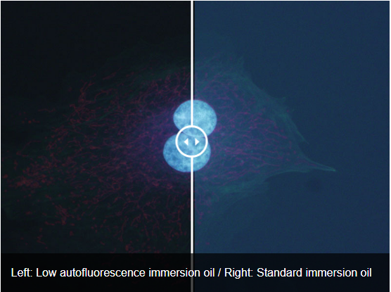 Left: Low autofluorescence immersion oil / Right: Standard immersion oil