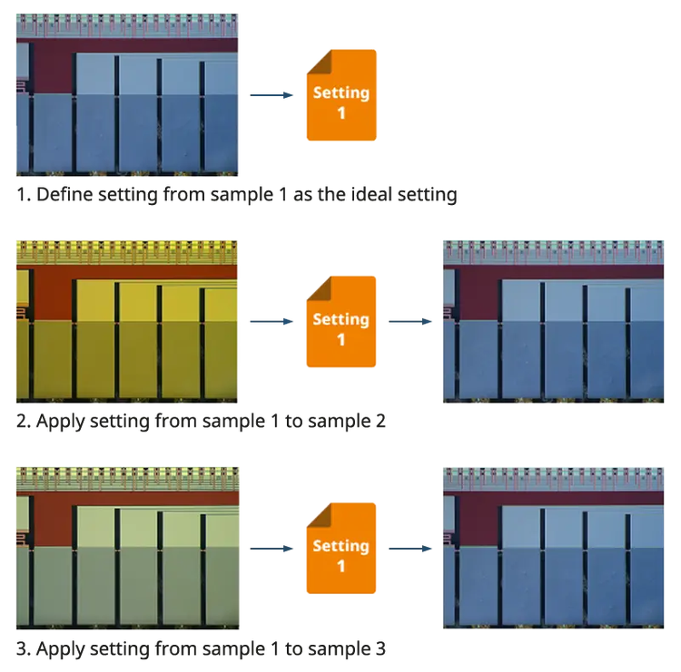 Con le immagini acquisite vengono salvate automaticamente le rispettive configurazioni. Per assicurare uniformità e ripetibilità è possibile riutilizzare le condizioni.
