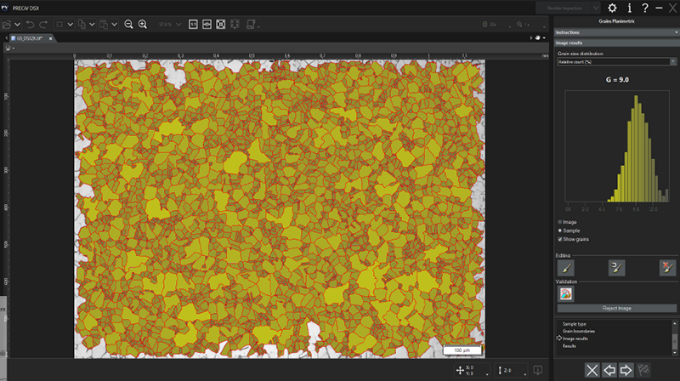 Le operazioni quotidiane per l'analisi dei materiali vengono semplificate con i flussi di lavoro automatizzati conformi alle norme. Diverse sono le opzioni selezionabili per la granulometria, l'analisi della ghisa, l'analisi della fase, la valutazione delle inclusioni non metalliche e altro.