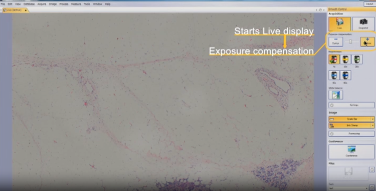 L'Olympus cellSens Standard non si limita all'acquisizione di una singola immagine ma permette l'applicazione di avanzati processi di acquisizione delle immagini (es: time lapse) e il controllo di componenti di microscopio dotati di motorizzazione e encoding.
