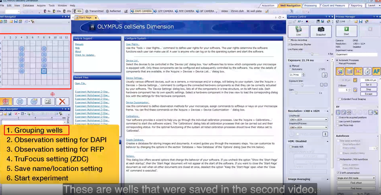 Il Process Manager facilita l'acquisizione di immagini multicanali e time lapse con soli pochi clic. Quando si usa una licenza cellSens Dimension è inoltre possibile realizzare l'imaging Z-stack