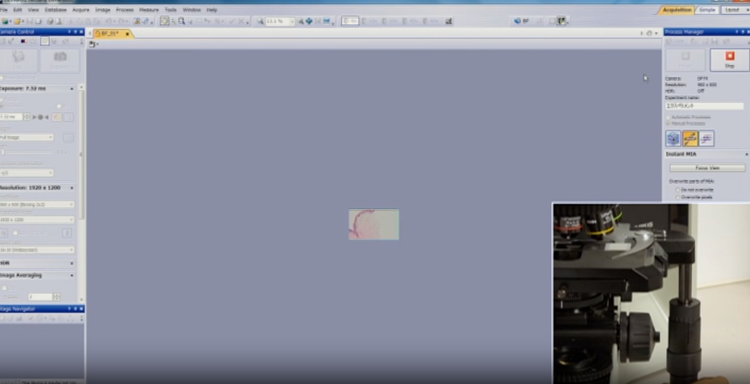 Con la soluzione Processo manuale è possibile creare delle immagini unite (stitching) in tempo reale. Il Processo manuale Control semplifica l'esplorazione del proprio campione utilizzando un tavolino manuale, mentre il software registra e unisce le immagini in tempo reale, rappresentando un'alternativa conveniente in rapporto all'imaging dell'intero vetrino.