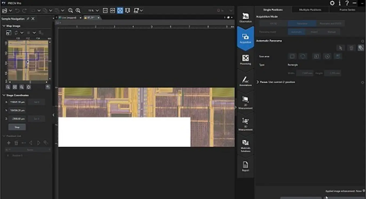 PRECiV possiede dei moduli opzionali che permettono di controllare i microscopi manuali e semiautomatizzati per l'industria e le scienze dei materiali, oltre ai dispositivi motorizzati X, Y e Z. Una dedicata interfaccia permette agli utenti esperti di controllare con efficienza un tavolino motorizzato e un sistema di messa a fuoco per acquisire immagini in time-lapse, video o stack 3D. Inoltre le soluzioni software dedicate supportano i tavolini motorizzati X, Y e Z con applicazioni come Da macro a micro, Navigate on wafer e Misura mediante il tavolino.