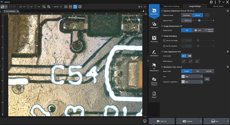 Con il software PRECiV™ ti consente di controllare il microscopio per poter eseguire misurazioni ripetitive 2D/3D e l'analisi avanzata delle immagini durante le operazioni di produzione, controllo qualità e ispezione. Progettato per i microscopi digitali e convenzionali di Evident, il software semplifica i flussi di lavoro con strumenti avanzati per l'imaging, la misurazione e la creazione di report.