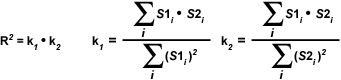 where S1 is the signal intensity of pixels in the first channel and S2 is the signal intensity of pixels in the second channel. The values S1(average) and S2(average) are the average values of pixels in the first and second channel, respectively. In Pearson's correlation, the average pixel intensity values are subtracted from the original intensity values. As a result, the value of this coefficient ranges from -1 to 1, with a value of -1 representing a total lack of overlap between pixels from the images, and a value of 1 indicating perfect image registration. Pearson's correlation coefficient accounts only for the similarity of shapes between the two images, and does not depend upon image pixel intensity values. When applying this coefficient to colocalization analysis, however, the potentially negative values are difficult to interpret, requiring another approach to clarify analysis results.