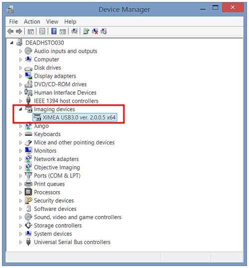 - Make sure the UC90 driver is listed as “XIMEA USB3.0 ver. 2.0.0.5 x64”