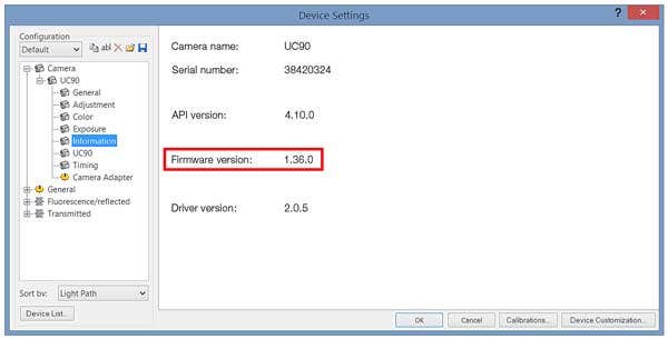 Digital UC90 cameras used in combination with the latest versions of cellSens or OLYMPUS Stream can in rare instances show a timeout error when changing acquisition modes. A new firmware for the UC90 was released to rectify this issue.