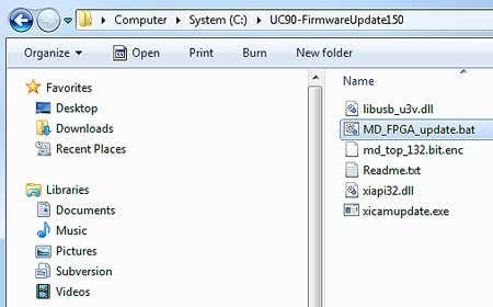 - Start the update process via executing or double-clicking on the “MD_FPGA_update.bat” file
