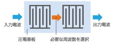 SAWフィルターは、固体表面を伝わる振動を巧みに利用しスマートフォンなどの通信機器が無数の電波の中から必要な信号だけを取り出すのに用いられる電子部品です。
