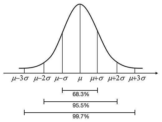 3σ(=99.7%):約370回に1回の確率で範囲外になります